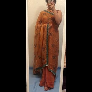 The blouse runs small but the saree can fit to large it is very well adjustable.
