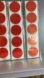 Three packs of 100 each total 300 stickers size is 1 inch equivalent of the size of a quarter. Red sticker background with all writing and design in a metallic gold. Says merry Christmas and has a holly leaf design with three stars.