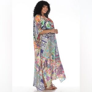 $300 Johnny Was Loci Patchwork Swim Cover-Up Kaftan Dress L/XL NWT