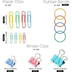 🧿Efficient File Arrangement: various sizes, different binder clips, paper clips, and rubber bands, multi-colors, suitable for different thickness, type, scene of information annotation and file arrangement, let you more relaxed and interested in the process of work.