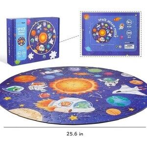 Puzzles for Kids Ages 3-5 4-8, Toddlers Wooden Jigsaw Puzzles, 300 Piece Large Round Space Floor Puzzle, Learning Educational Puzzles Toys for Boys and Girls ( 25.6 inches)