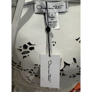 $3000 NEW Oscar de la Renta Leather Laser Cut Top Katy Perry White 2 4 6 Halter