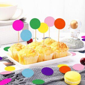 The orange yellow green blue purple pink colorful confetti can be used as cupcake toppers or decoration on the party cake pop stand. Just adding the sprinkles confettis around the table is good too. It will let your table will look more vivid.