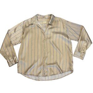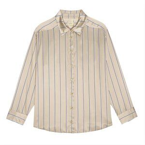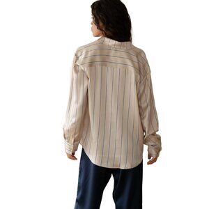 302. DONNI The Silk Pinstripe Shirt Sand-Pinstripe $434 EUC Medium