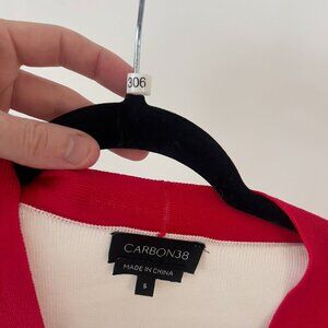 Add a pop of modern color to your wardrobe with this ultra-cool Carbon38 cardigan! This bold and stylish piece features a flattering deep V-neck, a front snap closure, and a crisp colorblock design in ivory, red, and blush pink.