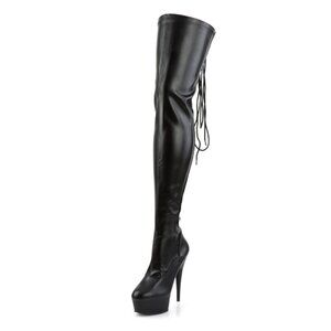 3063 Black Matte Stretch Lace Up Back Thigh High Heel Boots
