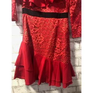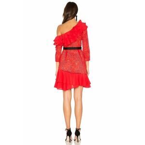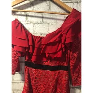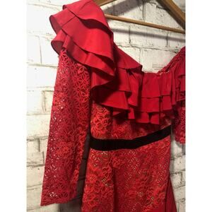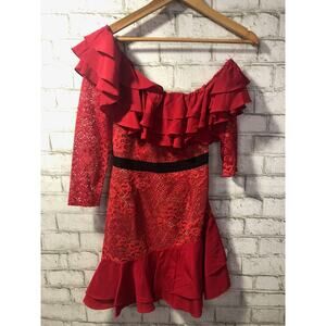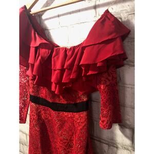 $308 For Love & Lemons Free People Chianti Red Hot Lace Ruffle Dress XS NWT