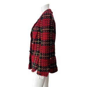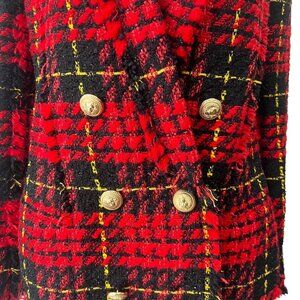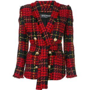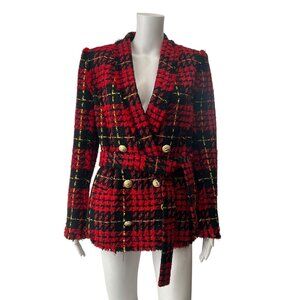 $3095 Balmain Red Black Herringbone Tweed Blazer Jacket size FR 40/8