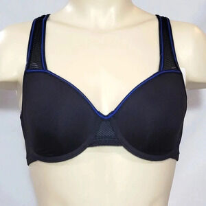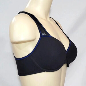 b.tempt'd 953199 by Wacoal b.active Underwire Sports Underwire Bra 30DD Black with Blue Trim
