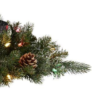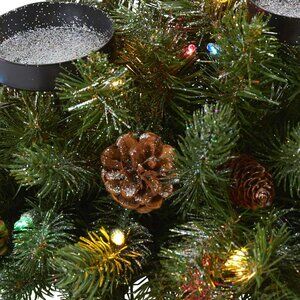 Nearly Natural 30in. Flocked and Glittered Artificial Christmas Triple Candelabrum with 35 Multicolored Lights and Pine Cones