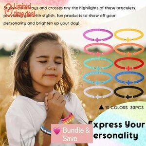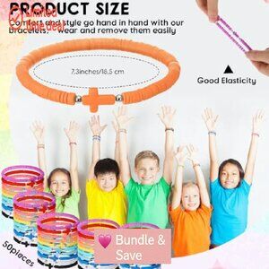 30-Pack Cross Bracelets, Polymer Clay Beads, Elastic Fit, Religious Wristbands