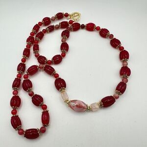 30", carved Ruby, tourmaline, rose quartz and glass artisan necklace!