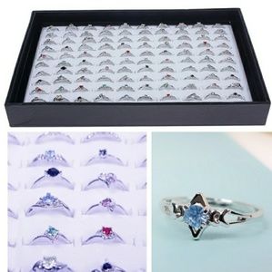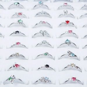 30pcs Silver Rhinestone Rings