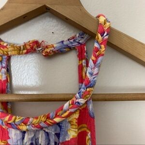 31. [American Eagle] Pink Floral Print High Neck Halter Swing Dress