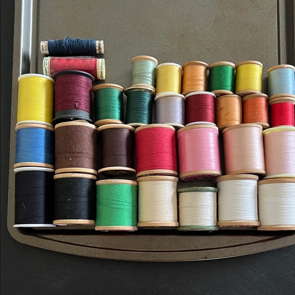 Vibrant collection of thread spools in various colors and sizes. Perfect for sewing projects.