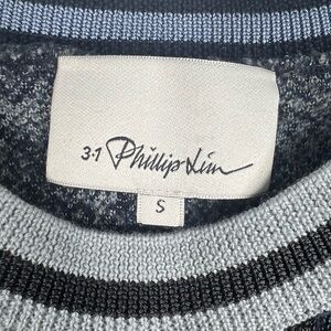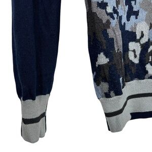 3.1 PHILLIP LIM Blue Camo Camouflage Intarsia Stripe Rib Knit Sweater Wool Small