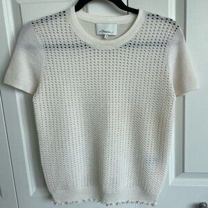 3.1 PHILLIP LIM Cream Perforated Wool Blend Short Sleeve Knit Top Sweater Size Small