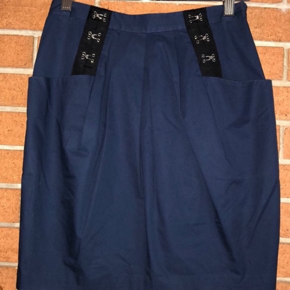 Simplistic yet stunning design by Philip Lim 3.1. Paneled I and hook closures going down both sides into 😍POCKETS😍 unlined side hidden zipper. Measurements taken flat waist 13 1/2” hips 18 1/2” length 18” 100% cotton Some wear from ironing can be seen. Priced accordingly 💙PHILLIP LIM 3.1💙EYE AND HOOK PANELED SKIRT💙