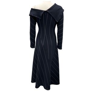 3.1 PHILLIP LIM NAVY PINSTRIPED LONG SLEEVED MIDI DRESS