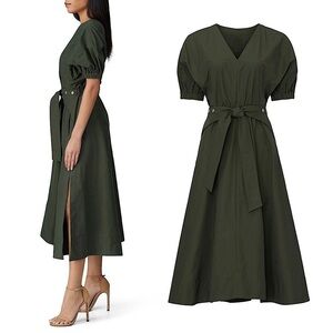 3.1 PHILLIP LIM Puffed Short Sleeve Grommet Tie Waist Full Skirt Utility Dress 0