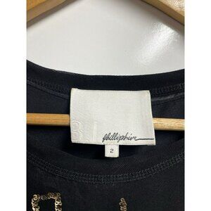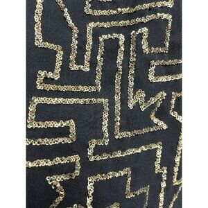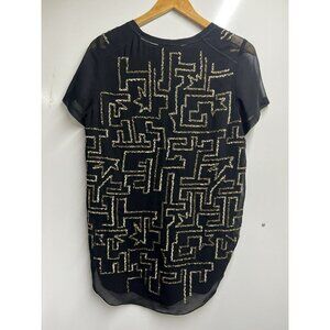 3.1 PHILLIP LIM SIZE 2 SMALL BLACK GOLD MAZE EMBROIDERED SEQUINS BLOUSE TOP