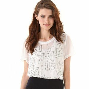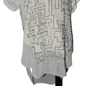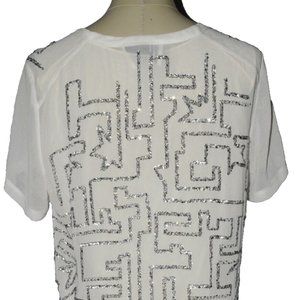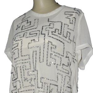 3.1 PHILLIP LIM SZ 6 S SMALL WHITE SILVER MAZE EMBROIDERED SEQUINS BLOUSE TOP