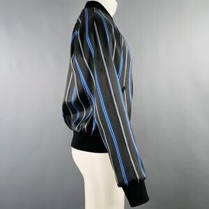 3.1 PHILLIP LIM Size M Black Blue Stripe Satin Bomber Jacket