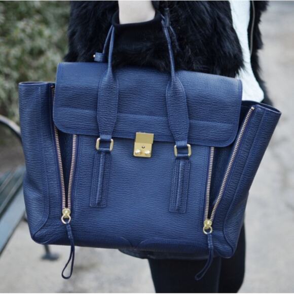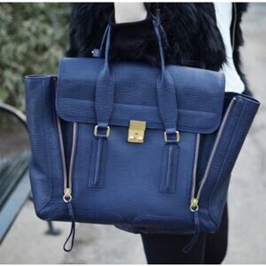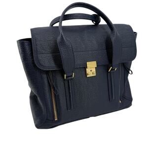 3.1 PHILLIP LIM Textured Calfskin Leather Large Pashli Satchel Ink Navy Blue