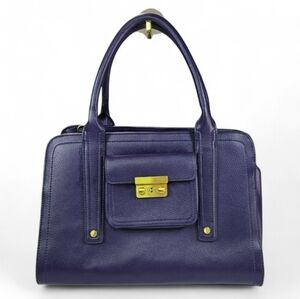 Discover the sophisticated elegance of the 3.1 Phillip Lim Blue and Gold Satchel, featuring a structured design with gold-tone hardware and a minimalist aesthetic. This bag is crafted with attention to detail, showcasing decorative vertical straps and a top handle for a professional look. Perfect for adding a touch of luxury to your everyday ensemble.
