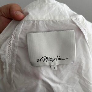 3.1 PHILLIP LIM White Lantern Sleeve Lattice Trim Cotton Shirt - Size 4