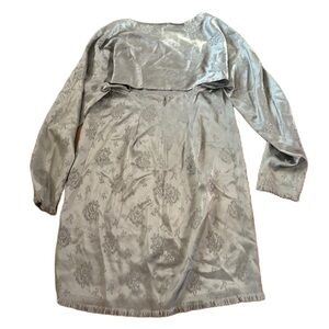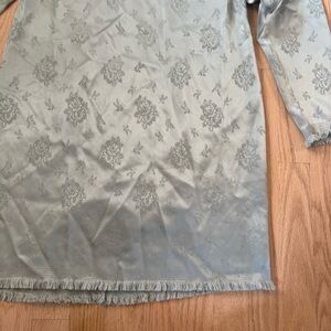 3.1 Philip Lim 100% Long Sleeve Dress Sz 6 Gray Silver Floral Jacquard Fringe