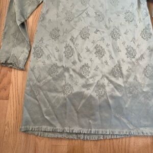 3.1 Philip Lim 100% Long Sleeve Dress Sz 6 Gray Silver Floral Jacquard Fringe Hem
