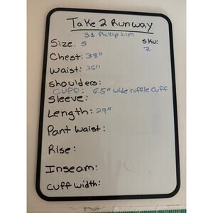 Elevate your wardrobe with this stunning 3.1 Phillip Lim sweater. Crafted from a luxurious blend of 70 percent wool and 30 percent cashmere, this lightweight sweater features a classic fitted ruffle cuff and a crew neckline. The tight-knit pattern and solid color make it a versatile piece for any occasion, whether it's a party or a casual day out. The sweater is part of the designer's Coquette collection, known for its fairy-like accents and dark academic theme. This sweater is perfect for winter, fall, or spring and is sure to turn heads with its stylish design. Dry clean only. For measurements see last picture.