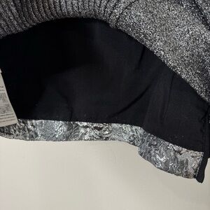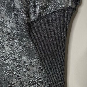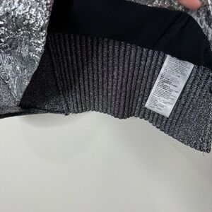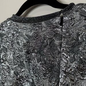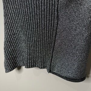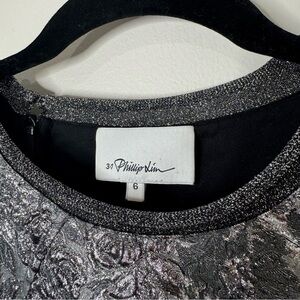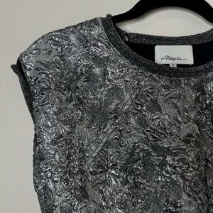 3.1 Philip Lim Metallic Silver Black Brocade Ribbed Knit Cap Sleeve Blouse Top
