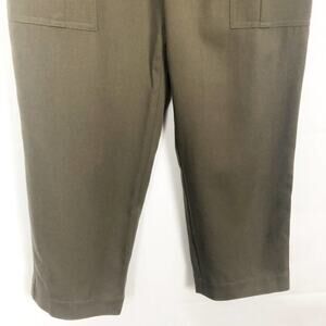 Olive green wool pants by 3.1 Phillip Lim. Straight leg. Crop just above the ankle. Oversized flap. Zipped pockets. 100% wool. Zipper is flawed, please see last two photos. Fabric is in great used condition. No other flaws.
