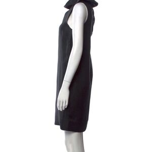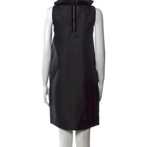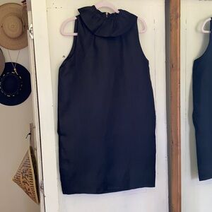 Black ruffle neck sleeveless dress with half zip at back and side pockets hits at the knee size 10