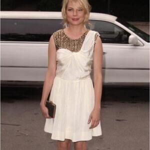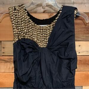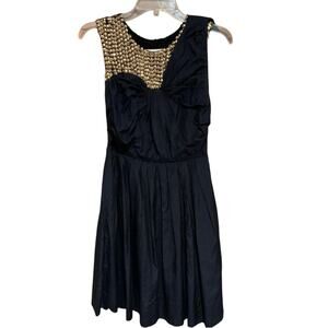 3.1 Phillip Lim Silk Pleated Gold Sequin Asymmetric Fit & Flare Cocktail Dress Size 2