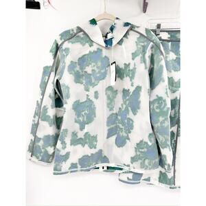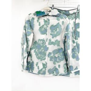 Abstract floral daisy blooms stand out on this matching, two piece skirt set from 3.1 Phillip Lim. This set includes a funnel neck pullover jacket top and an a-line midi skirt.