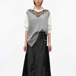 3.1 Phillip Lim Black Gray Ivory Oversized Knit Combo Shirt with Lace Inlay Wool Blend