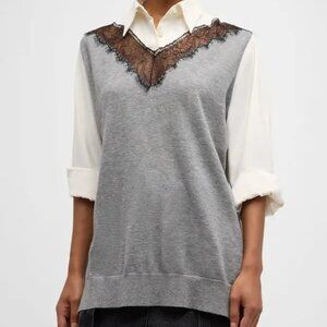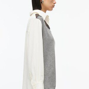 3.1 Phillip Lim Black Gray Ivory Oversized Knit Combo Shirt with Lace Inlay