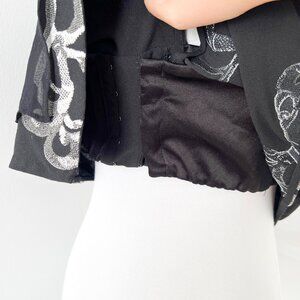 3.1 Phillip Lim Black & Silver Embroidered Silk Overlay Cropped Top Blouse