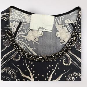 3.1 Phillip Lim Black and White Beaded Collar Long Sleeve Silk Dress Size 4