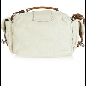 Comes with branded dust bag. In great condition, has some discoloration on back and a small spot hidden behind the front pocket lip.