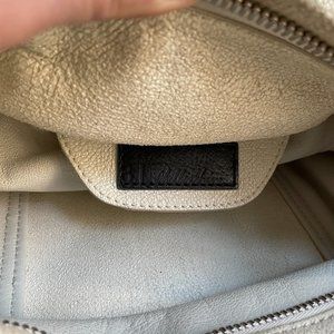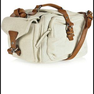 3.1 Phillip Lim Brea Leather Camera bag. Leather is treated to achieve a canvas-like effect, this leather handbag features a zip front pocket and side patch pockets. Leather buckled flaps at top and at side pockets.