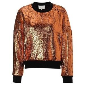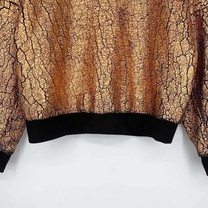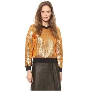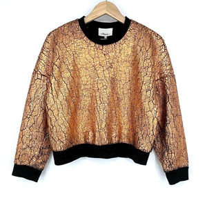 3.1 Phillip Lim Crackled Metallic Copper Cropped Sweatshirt Gold Long Sl…