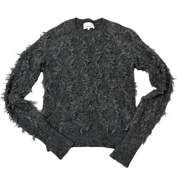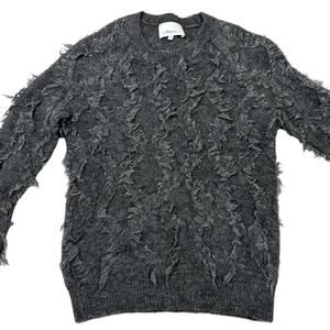3.1 Phillip Lim Destroyed Diamond Fringe Sweater Mohair Wool Blend Gray Small