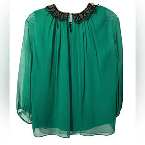 3.1 Phillip Lim Green Silk Chiffon Blouse Beaded Collar Size 6