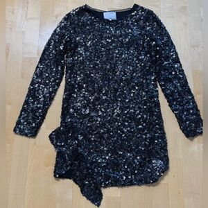 BLACK SILK DRESS FULLY COVERED IN SEQUIN. LONG SLEEVES. FULLY LINED.