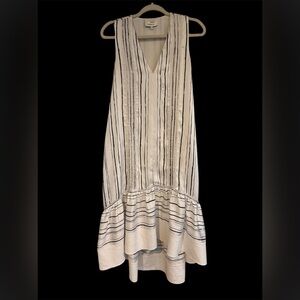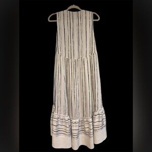 White with black stripes Ruffle Hem Midi Dress! With attached Slip