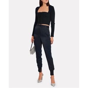 3.1 Phillip Lim High Rise Satin Jogger Pant with Rib Side Panel in Midnight Navy Blue. This style pant ran very large, so required tailoring to fit correctly. I’ve pictured the back waist inside and out to show where the alterations are. (The back tag was removed.) The pants are in perfect condition - no snags whatsoever.